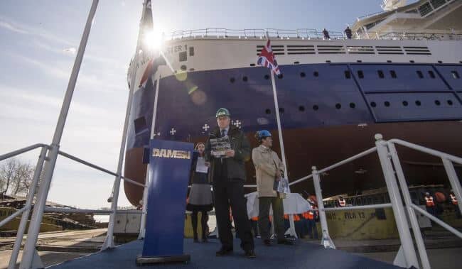 The pioneering Bibby WaveMaster 1, the first of Damen’s purpose-built Service Operations Vessels (SOV) with Walk-to-Work (W2W) capability, was officially launched at Damen Shipyards Galati in Romania on March 24th.