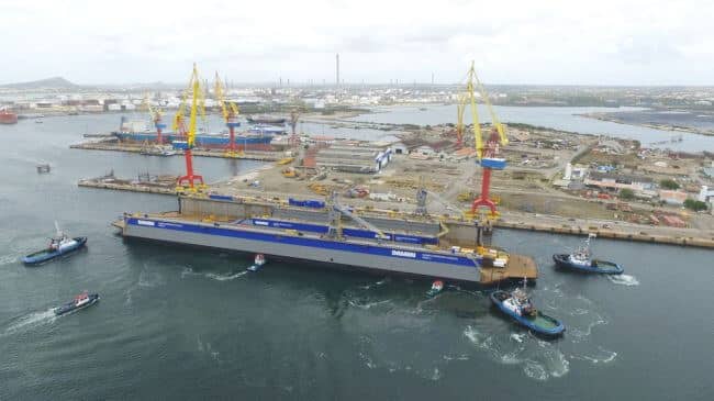 “We plan more investment in the years ahead,” said Lodewijk Franken, Managing Director at DSCu. “This will focus on the further improvement of our facilities, equipment and tools, as well as ongoing in-house training to broaden the abilities of our personnel and make them multi-skilled. These initiatives along with our floating docks will provide a significant boost to the yard and even now our sales team is in discussions with a number of companies regarding a wide variety of vessels ranging from a local research vessel to tugs, small cruise ships and OSVs. We also plan to support regional naval vessels including those of the Royal Dutch Navy and with the support of a Damen Services team the yard will provide maintenance and repair services to Damen-built tugs and workboats operating in the region.
