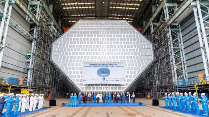 VLEC construction team works closely with shipowners, supporting manufacturers and classification societies to overcome unfavorable factors such as the new crown pneumonia epidemic, overcome key technical difficulties in the core and key technologies of Type B tanks, and focus on project management orientation and innovation Process method, nickel steel welding procedure, thin plate deformation control and optimization of the construction process.
