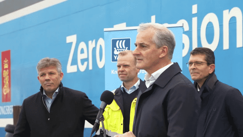 The world’s first electric and self-propelled container ship – Yara Birkeland – has departed for its maiden voyage in the Oslo fjord. Today, the Norwegian Prime Minister was given a tour by CEO of Yara, Svein Tore Holsether.
